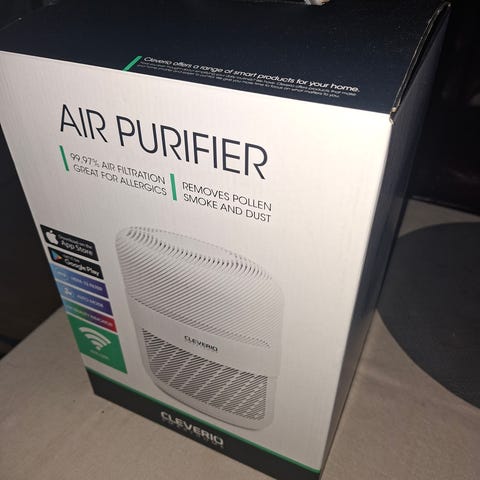 Cleverio luftrenare i fint skick. All information kan hittas här: https://www.kjell.com/se/produkter/hem-fritid/kropp-halsa/luftrenare/cleverio-air-purifier-smart-luftrenare-p47007