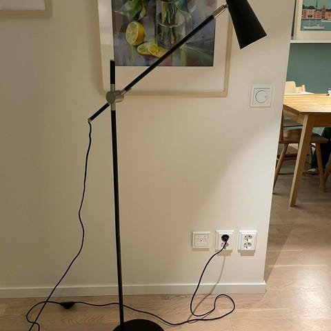 Uppåtlysnade golvlampor 2 stycken, höjd 180 cm, skärmens diameter 42 cm. Som nya, en inte använd. Dimbara, NY pris 2950 kr. Säljs för att de inte passar vårt hem, 800 kr. styck, 1400 för båda