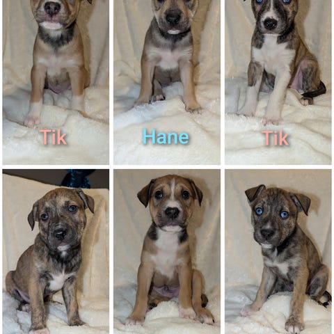 Hej jag heter Chlouy jag är född den 26/03/2025.Jag upplever stor separationsångest så söker dig vem har tid,ork och tålamod för mig .Och kunnig med min ras,för att jag är en pitbull amstaff blandis.Jag är snäll och charmig älskar mysas i soffan leka busa.Jag går jättebra med andra hundar och andra djur.Jag gillar leka med barn men är jätte osäker med bemöta vuxna jag brukar skälla hårt men jag absolut inte bitas.Helst jag vill bo på landet vars jag kan gå ut vid behov.Jag är jätte duktig med inkallelse och jag är jätte duktig gå i koppel ,även utan.Du kanske vill veta om mina föräldrar,min mamma är amstaff och pitbull blandis och pappa är renrasig pitbull terrier vili blod.Både föräldrar är bra fysiskt och psykiskt hälsa.Jag är full vaccinerad och chipad.Jag väntar på dig och önskar att vi kan fyra jul och nyår tillsammans med glädje.MVH Chlouy.Hör av dig om du känner att du kan va rätt person för mig,jag väntar på dig.