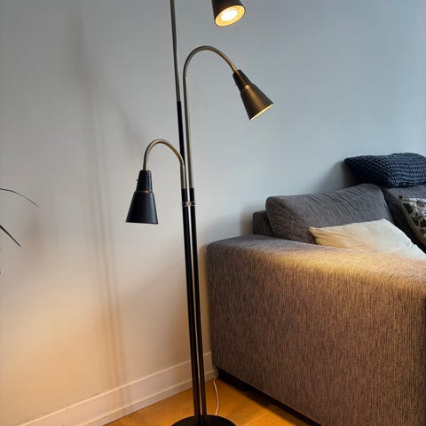 Bordslamporna Svensktillverkade "Ivars" höjd utan skärm c:a 32 cm med skärm c:a 51 cm diameter lampskärm c:a 27 cm. Golvlampan Dansktillverkad ABO höjd 128 cm med lampskärm c:a 150 cm lampfot diameter 23 cm. Priset för bordslamporna och golvlampan tillsammans är 1995 kronor. Lampskärmarna är helt nyköpta och av samma fabrikat. Om någon saknar bil och är nöjd efter att ha sett lamporna ( visas i trapphuset i entrén till där jag bor) så kan jag till självkostnadspris transportera den till köparens bostadsadress men då endast inom Stockholms innerstad.