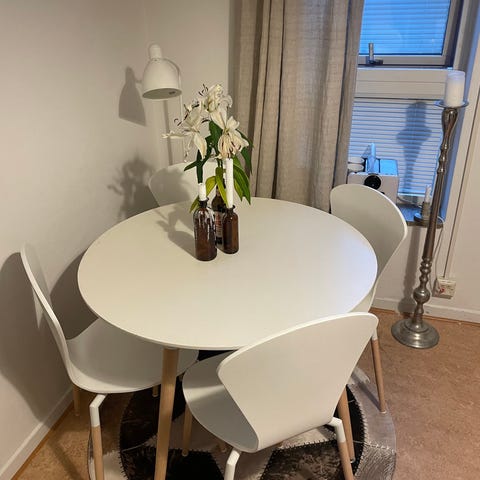 Matbord och 6 stolar till salu. Inkluderat inläggsskiva för förlängning av bord.