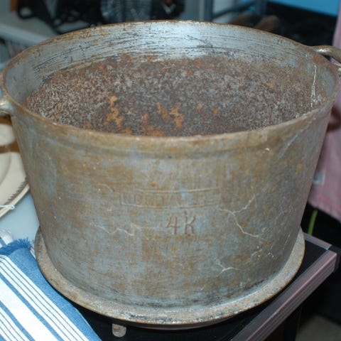 Stor oval Gammal järngryta med lock