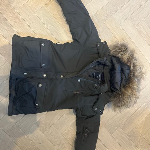 Vinter skidjacka med dun. Avtagbar huva med Saga pälskant. Snölås på insidan i midja och ärmar. Ski pocket/ficka för liftkort på ärmen. Går naturligtvis bra att även använda som vanlig vinterjacka.