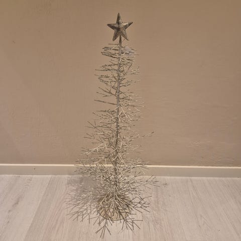 Dekorativt ljusträd i metal med glasprismor och hängande ljuskoppar i glas. Tillverkad i Finland, höjd ca: 55cm