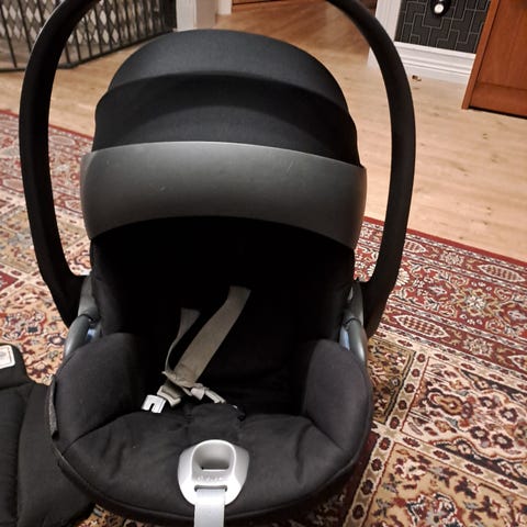 CYBEX Babyskydd med en storlek på 13 cm i svart färg. Babyskyddet är utformat för att ge säkerhet och komfort för spädbarn under bilresor. Produkten har ett justerbart bärhandtag och är kompatibel med bilsäkerhetsstandarder för barnsäten.