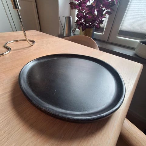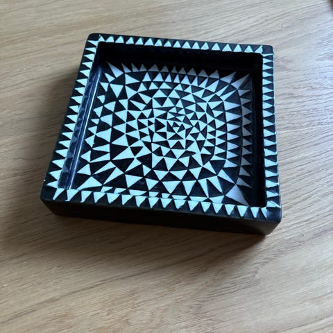 Läderfat från Palmgrens med dolda tryckknappar i hörnen. 10,5 x 10,5 x 4 cm. Helt ny. Nypris 1000kr