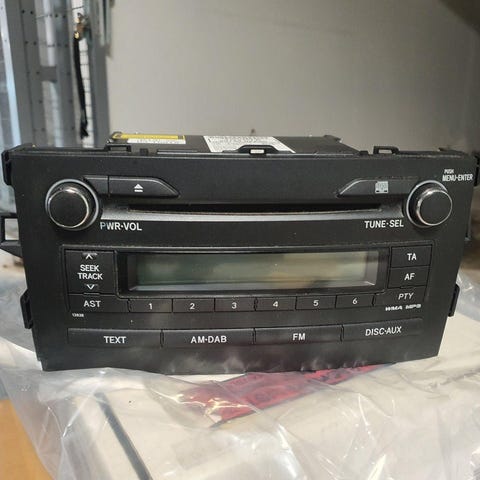 Bilstereo med tillbehör. Bilverkstaden plockade ur denna anläggning och satte in originalradion på minYoyota Yaris årsmodell 2016. Har legat nerpackad men funkade bra innan den plockades ut. Kan därför ej garantera funktion.