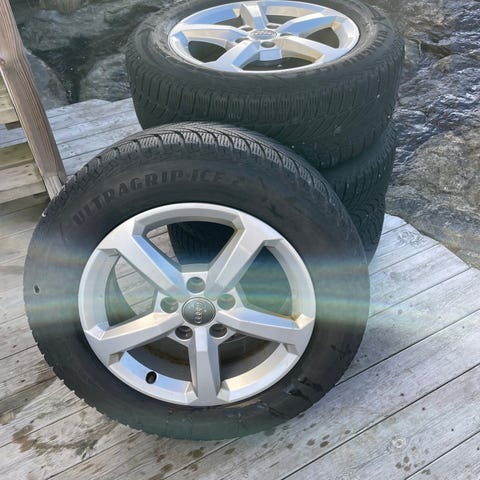 Dubbade vinterhjul på plåtfälg med Audi navkapsel. Ca: 8mm kvar på däcken