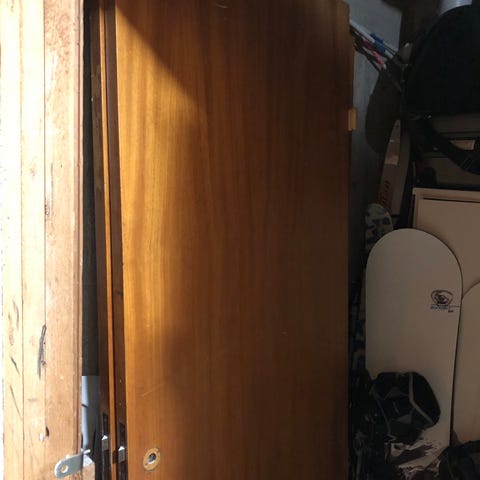 Bortskänkes dörr från 1940-talet. Går att låsa med nyckel som ingår. 209 cm i höjd, finns bild på djupet.
