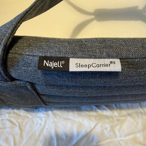 Fint skick, inkluderar bärhandtag och axelrem, samt liten pandakudde.