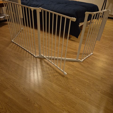 Säljer två stycken väl fungerande Lascal KiddyGuard Accent Skruvgrind, 130cm, färg: vit.