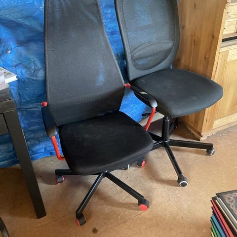Höj-/sänkbar. Hel o ren, men lite skrapad på ryggstödets kanter