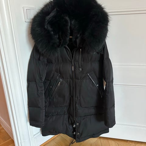 Knappt använd Cedrico vinterjacka för dam i storlek S och svart färg. Jackan har en vadderad design med dragkedja framtill och två fickor med dragkedja. Kragen är prydd med en stor, svart pälsdetalj. Passar för kallt väder.