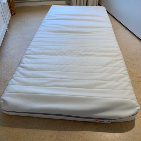 IKEA sängmadrass i vit färg, modell Malfors. Madrassen har en enkel design och är tillverkad för att användas som en del av en sänglösning. Ej resår, ngn form av skumgummi. Använd av ett barn, med madrassskydd. Helt utan fläckar. Ser ut som ny.