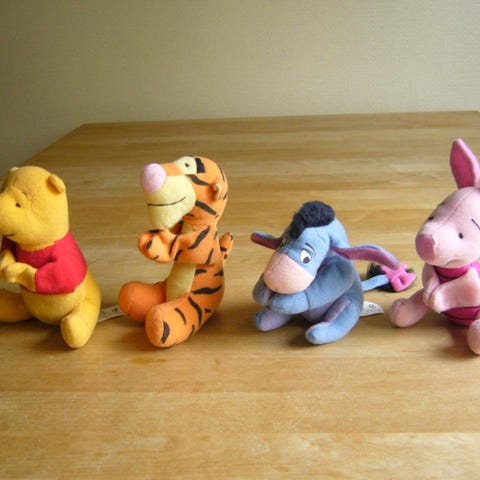 Nalle Puh barnleksaker i form av mjukdjur i flera färger och olika storlekar. Passar för barn och kan användas som leksaker eller samlarobjekt. 100 kr/st