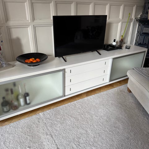 Säljer nu detta fina set med glasskiva till sideboarden då det är dags att möblera om. Vi tömmer självklart allt innan det säljs.