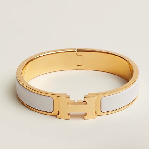 Klassisk Clic-armband från Hermes vit emalj/guld storlek pm