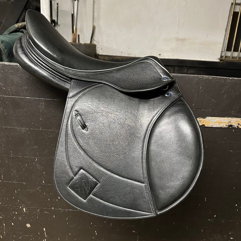 Mörkbrun Morris & Nolan, hoppsadel, 17”, normal vidd. Fint skick, nyligen omstoppad. Fantastisk kvalitet. Finns i Mölnlycke utanför Göteborg.
