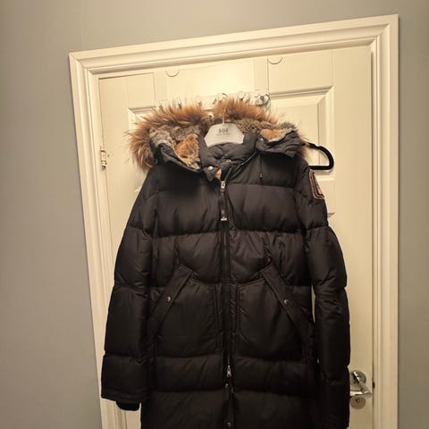Säljes Parajumper dunjacka i beige färg, storlek XL för kvinnor, smal passform. Riktigt varm och skön.