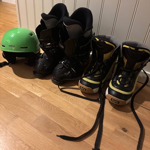 Skridskor, pjäxor, snowboardboots, snowboard barn