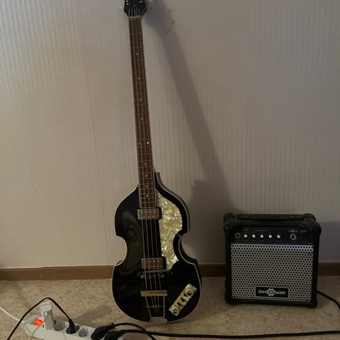 Cort Action bassgitarr i röd färg med fyra strängar. Medföljer en Geqtronic basförstärkare med flera kontroller för volym och tonjustering. Paketet inkluderar även en digital tuner för stämning av instrumentet. Bassgitarren är lämplig för nybörjare och övning.