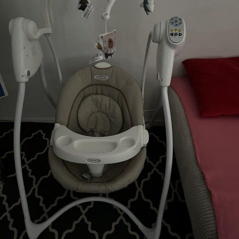 Graco babysitter gunga med mjukt mönstrat tyg i ljusa färger. Utrustad med en lugnande vibrationsfunktion och en kontrollpanel med flera inställningar för musik och gungning. Inkluderar en leksaksmobil med mjuka hängande figurer för barnets stimulans. Passar för spädbarn och småbarn.