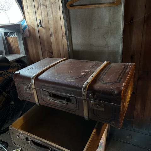 Sparsamt använd. Denna typ koffert användes väldigt ofta av medlemmar i dansband och övriga artister och skådespelare när de var på turné för sina generösa utrymmen för scenkläder mm.