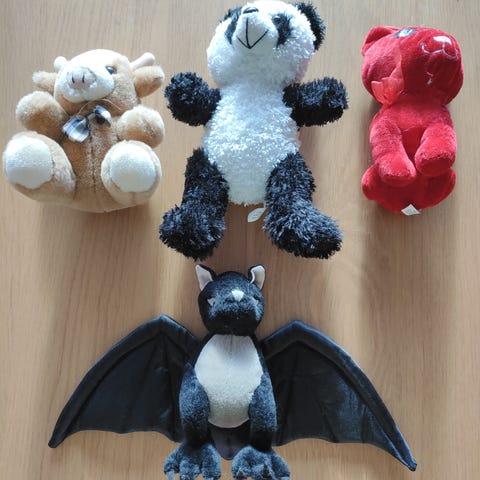 Mjukisdjur Set med flera olika figurer i varierande storlekar och färger. Storlek 23 - 12 cm. Setet inkluderar en blå nallebjörn, en grå pingvin, en vit och blå nalle, en beige nalle, en vit figur och en nyckelring med en grå nalle med halsduk. Tillverkade av mjukt material, lämpliga för barn.