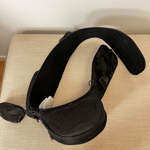 Höftkudde att bära sitt barn på. Går att fälla ihop så den är lättare att packa ner.