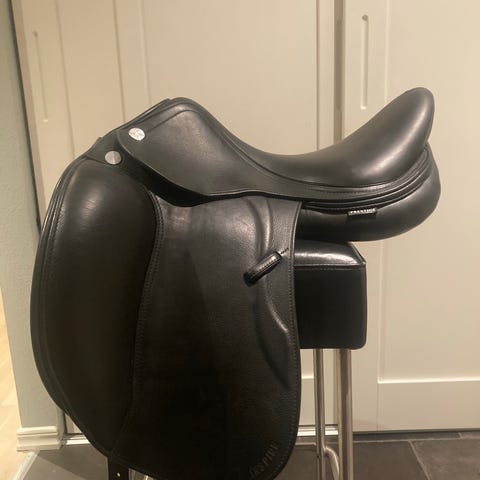 Dressyrsadel i storlek 16". Normal mot vid i bommen. Fint skick! Dottern har växt ur den tyvärr.