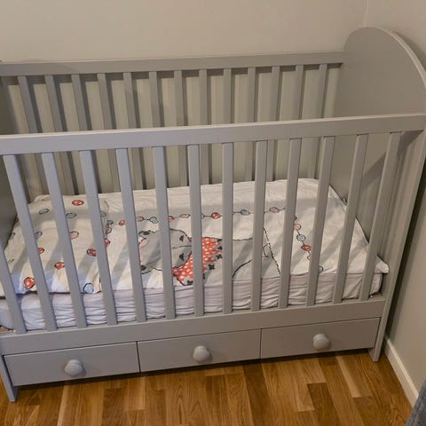 IKEA GONATT Spjälsäng Ljusgrå 66x123x103 cm + madrass