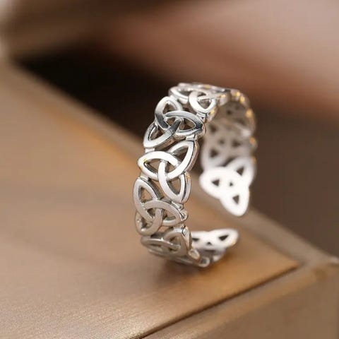 Ring keltisk knut. Öppen ring. Justerbar. Elegant minimalistisk smycke för kvinnor. Vardag & formell användning. Hållbart rostfritt stål. Perfekt present till henne, Årsdag, Bröllop, Födelsedag.