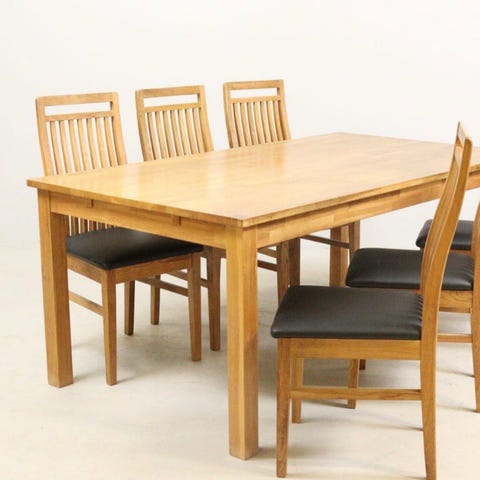 Säljer vårt fina bord i oljad ek med 4 st klädda stolar i brun skinnimitation som är jättesköna.