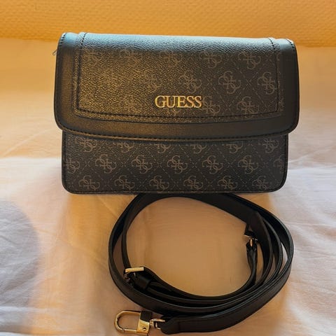 Guess by Marciano. Handväska i superfint skick. Väskan är i canvas/tyg, knäppet och axelremmen/handtaget är i skinn. Fina detaljeri guldfärg.