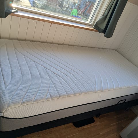 Höj och sänkbar tempursäng North Stone 22, bäddmadrass och -skydd. Varsamt använd.
