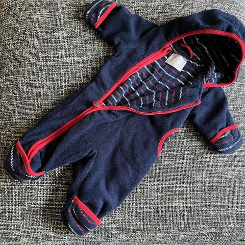 Varm fodrad fleeceoverall, perfekt för vinterbebis. Använd en kort period då bebisar ju bara är såhär små en kort stund. Supersöt och praktisk då man kan dra overallen över de små fötterna och händerna i början. När bebis växer kan man vika ut dem. Hämtas i Vårberg och betalas med swish eller skickas med blocketpaketet.