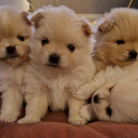 Söt Pomeranian/ Bolognese tik valp 9 veckor som nu är besiktad, chippad, vaccinerad och avmaskad. Hon är uppväxt med andra hundar och katt. Väldigt social och trevlig.