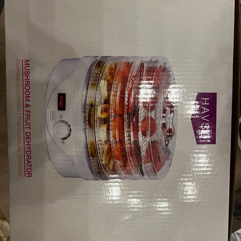 Silvercrest Food Dehydrator med effekt på 350 watt. Vit färg och flera stapelbara torkbrickor för torkning av frukt, grönsaker och andra livsmedel. Använd några gånger, säljer pga inte har en kolonilott längre.