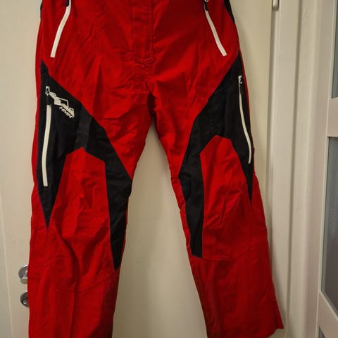 Jacka med inbyggda skydd, röd och svart. Sparsamt använd. Kan tas till Ö-sund,Bräcke och Kälarne.
