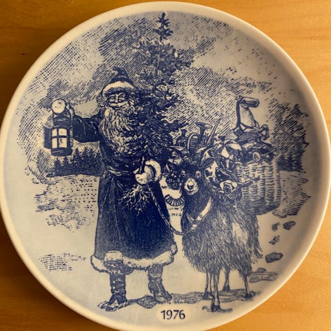 Royal Copenhagen Julplatte 1971 Juldekoration i keramik med blåvit färg. Assiettens motiv är traditionellt och detaljrikt, avsedd för samling eller dekorativ användning under julen.