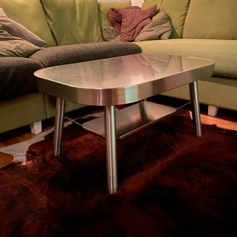 Soffbord med skiva i betong och ben i galvaniserat stål. Mått 120x80cm, höjd 44cm. Design från Mats Bernhard Jönsson, MBJ Design.