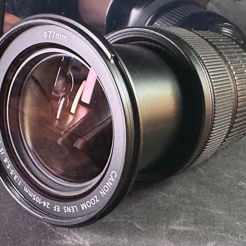 Canon EF 28-135mm Zoomobjektiv med variabel brännvidd. Objektivet är svart och avsett för användning med Canon-kameror. Passar för fotografering i olika miljöer tack vare dess flexibla zoomomfång.