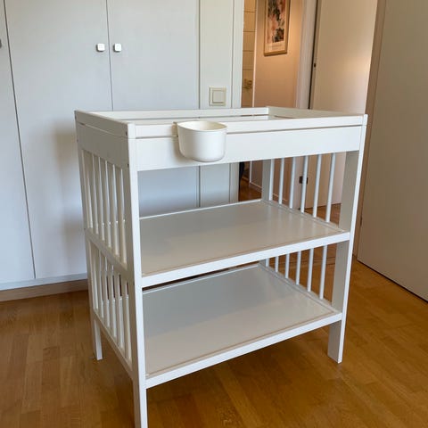 Säljer vårt fina skötbord JLY Dream Lux i vitt. Stabilt och praktiskt med gott om förvaring på hyllorna under. I bra skick och väldigt lätt att hålla rent. Perfekt till både små och större bebisar.