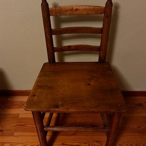 Jättefin gammal stol. Inte stadig att sitta på men vacker som blickfång eller som litet bord.