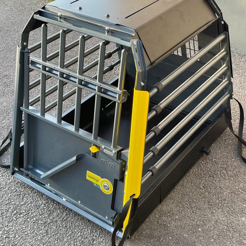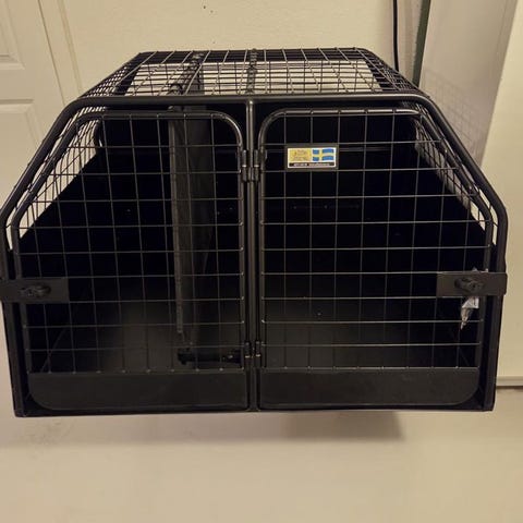 Lite avskavd färg vid öppningen. Kvalitetsbur som inte ”skramlar” vid körning. Nypris 7000:-