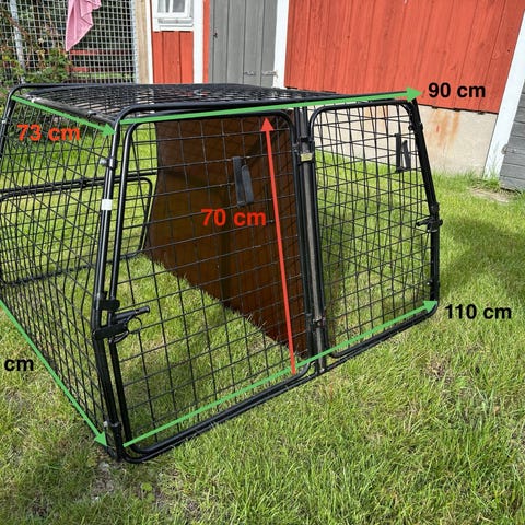 Mått bredd 60 cm, längd i botten 110 cm, längd upptill 65 cm. Passar till Schäfer, Ladrador mm.