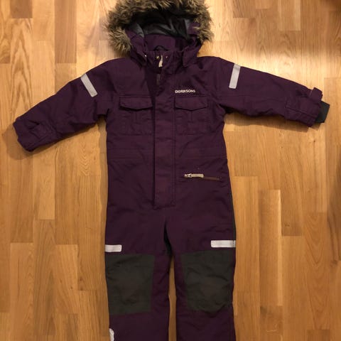 Didriksons barnoverall i storlek 80, färgerna rosa och mörkblå . Overallens material är anpassat för barn och inkluderar en huva med fuskpäls. Passar för utomhusbruk och skyddar mot kyla. Det kommer från ett djurfri hus.