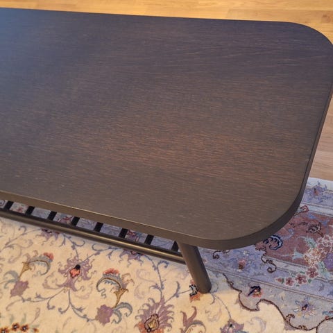 Bordsytan i askfaner och benen i massiv björk ger en varm, naturlig känsla till rummet.