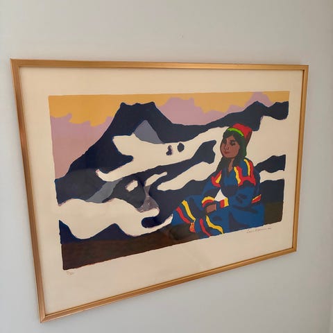 Påkostad inramning i cremevit metallram -96. Finns på Norr Mälarstrand i Stockholm.