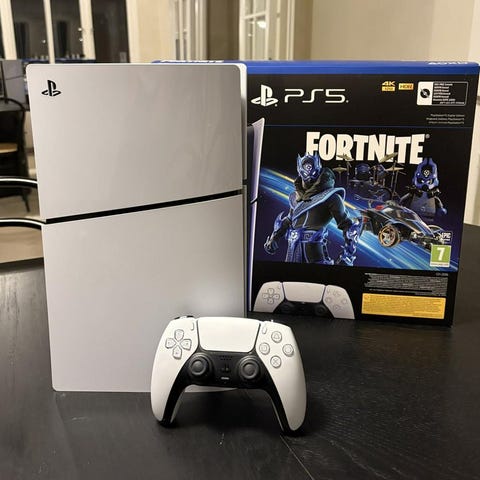 Playstation Slim 1TB med två handkontroller och Battlefield 6
